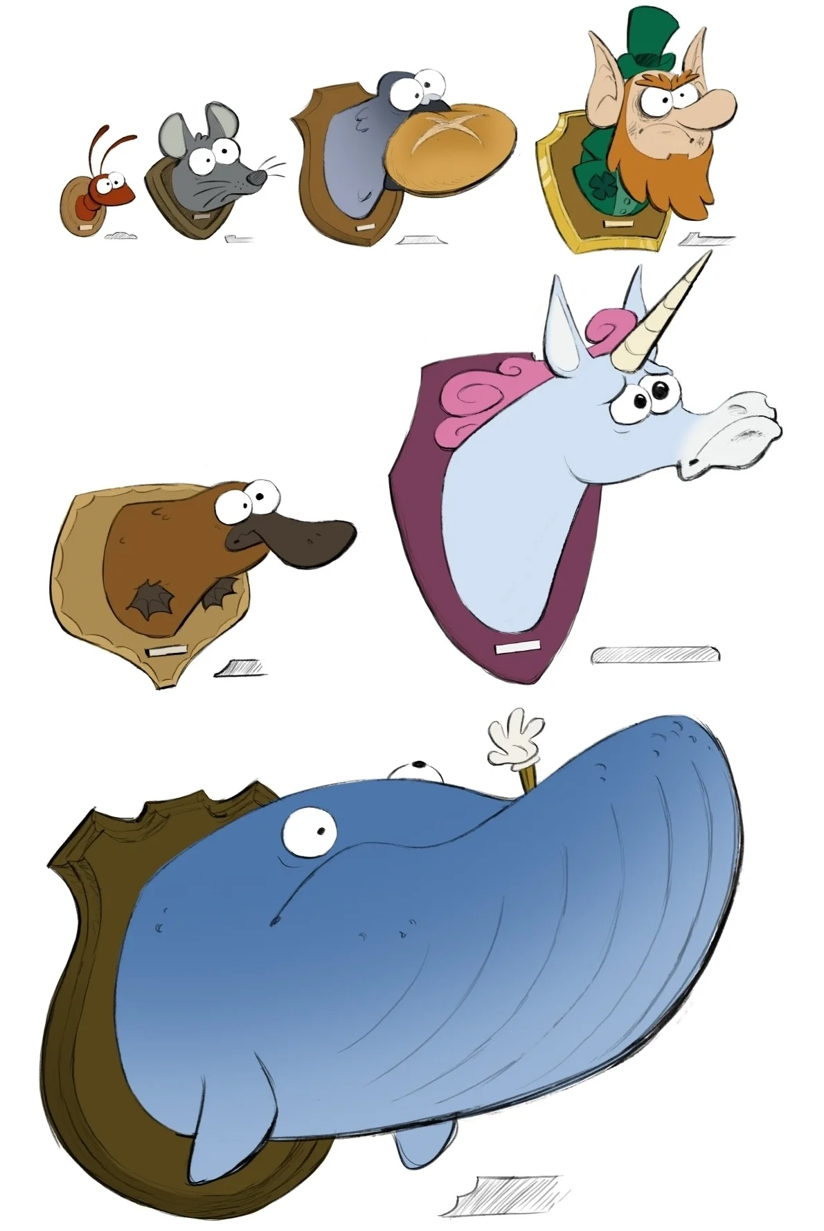 Character designs for the Youtube sketch Imaginary Friend by Thomas Ridgewell, 2017